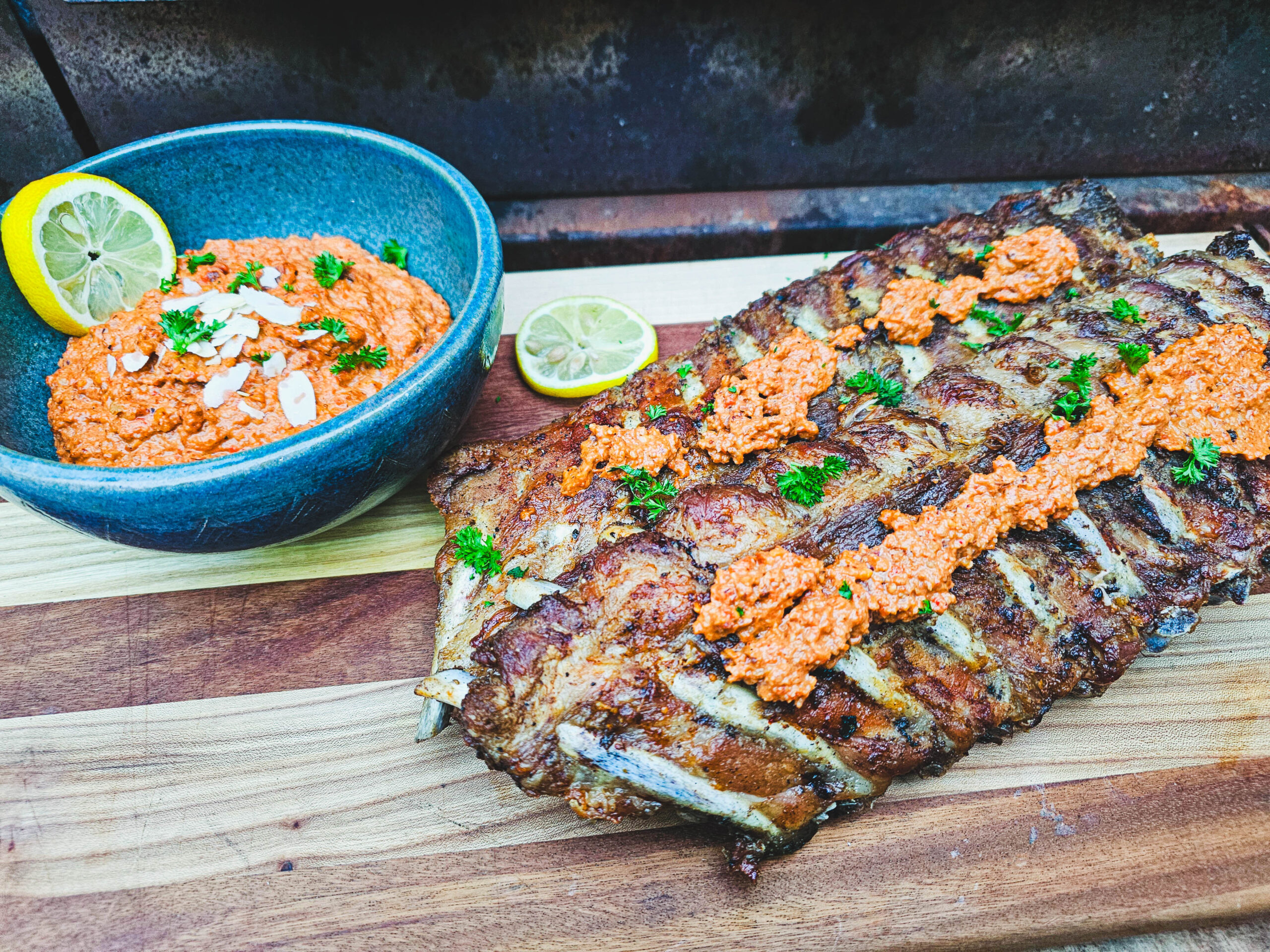 Iberico spareribs met romesco saus